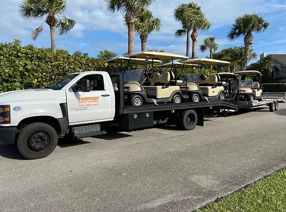 We have a fleet of delivery trucks and trailers that can pick up your cart from anywhere in our South Florida region. We can pick up your cart for services and drop it back off, or even relocate your cart if you need!
